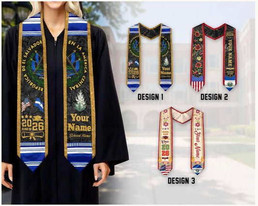 Custom Salvadorans American Flag Graduation Sash 2026